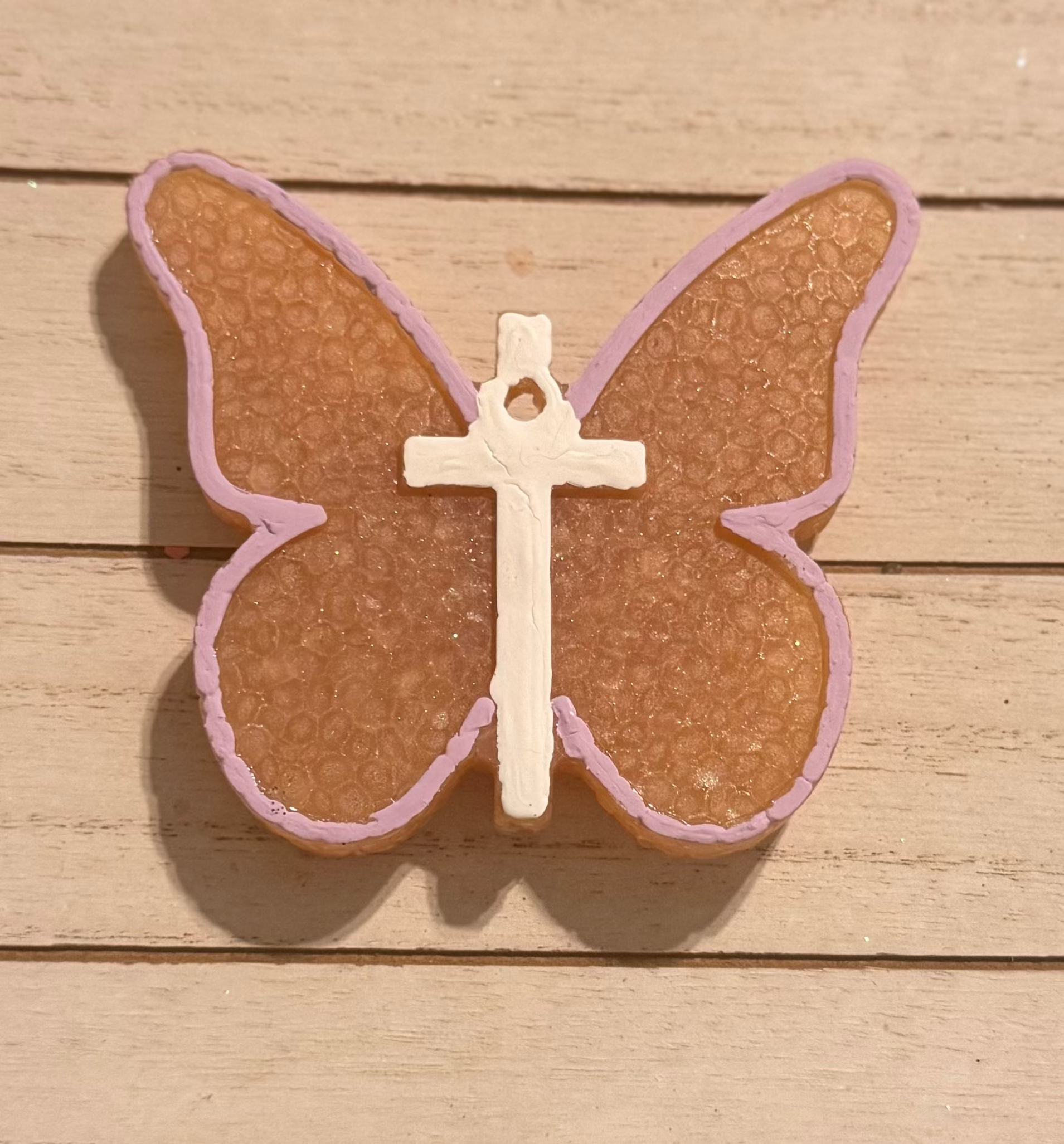 Butterfly With Cross Hanging Freshie